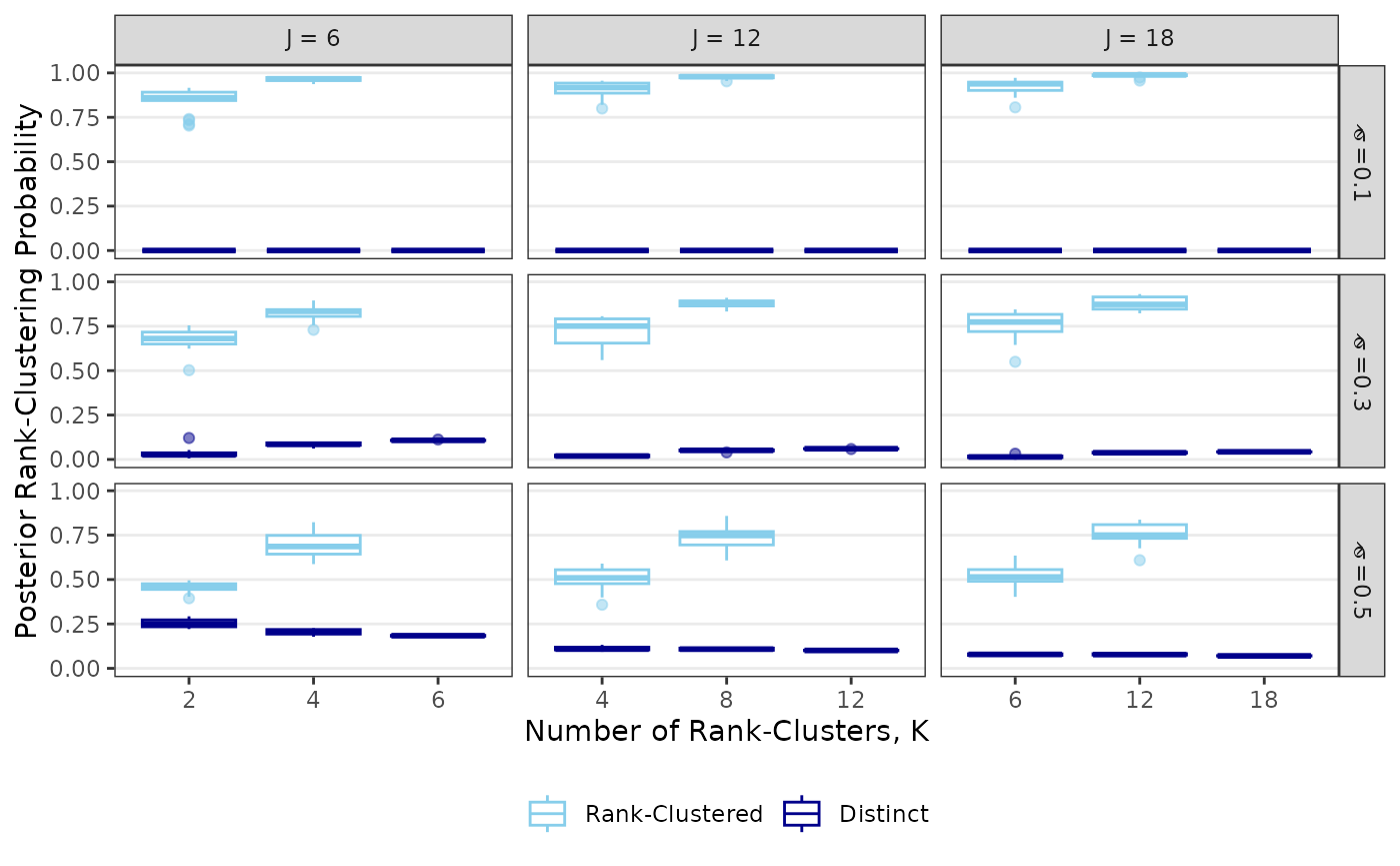 labs(x="Number of Rank-Clusters, K",y="Posterior Rank-Clustering Probability",