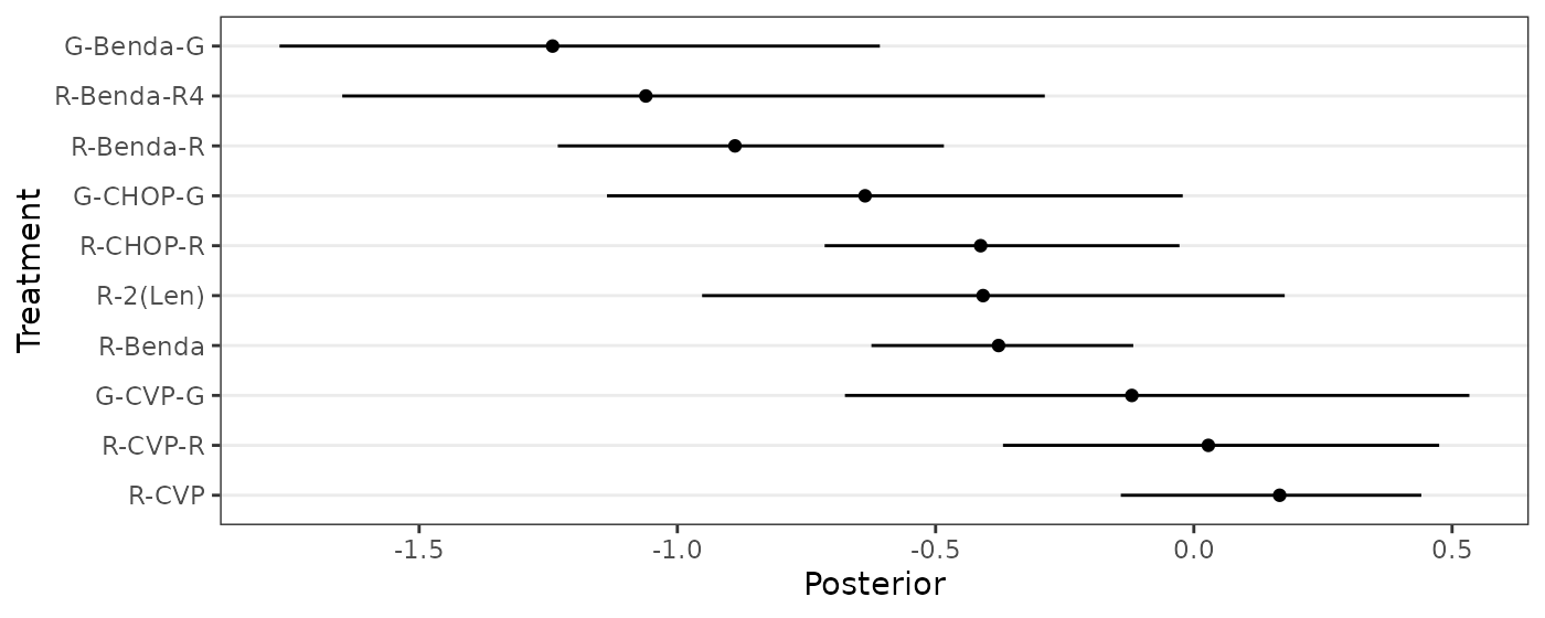 scale_y_discrete(limits=rev) + labs(y="Treatment",x="Posterior") +