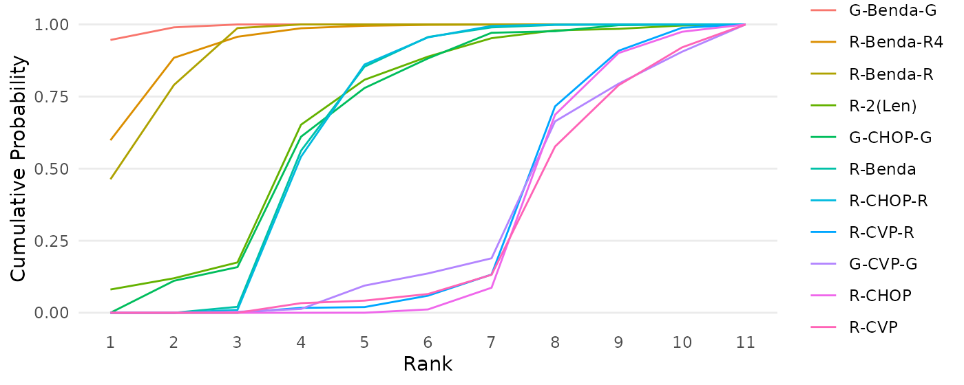 create_cumulativeranking(mcmc_results, names=treatments)